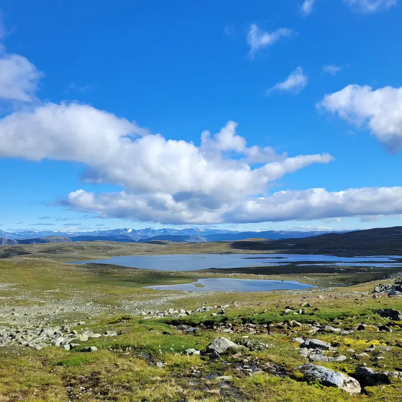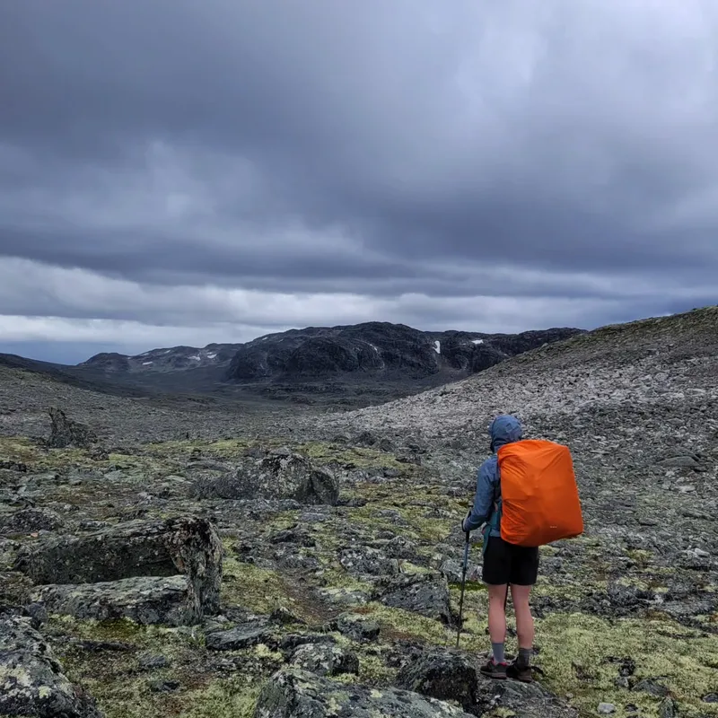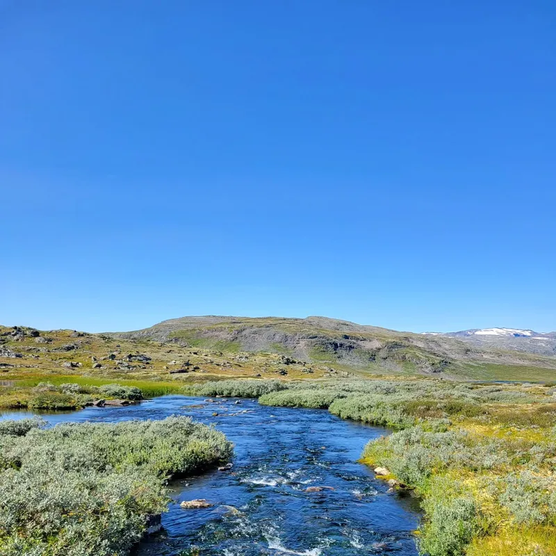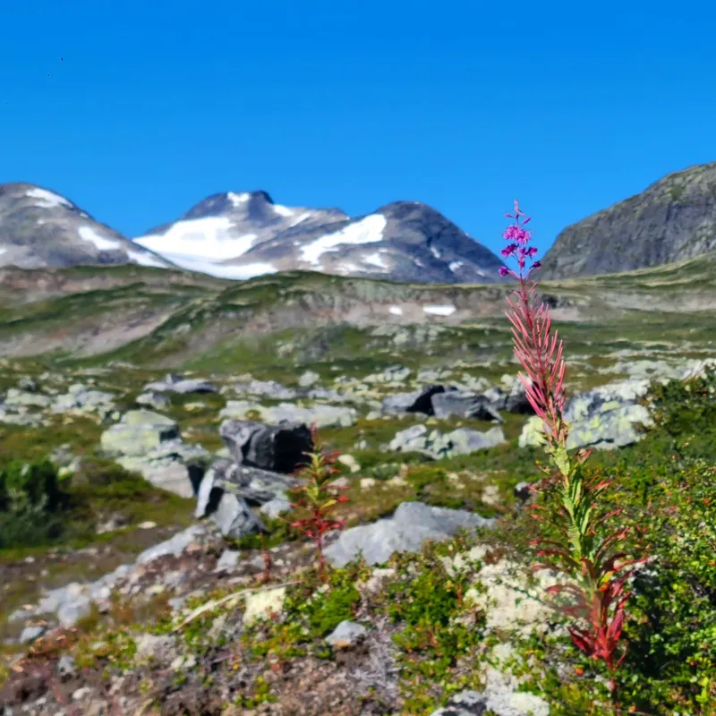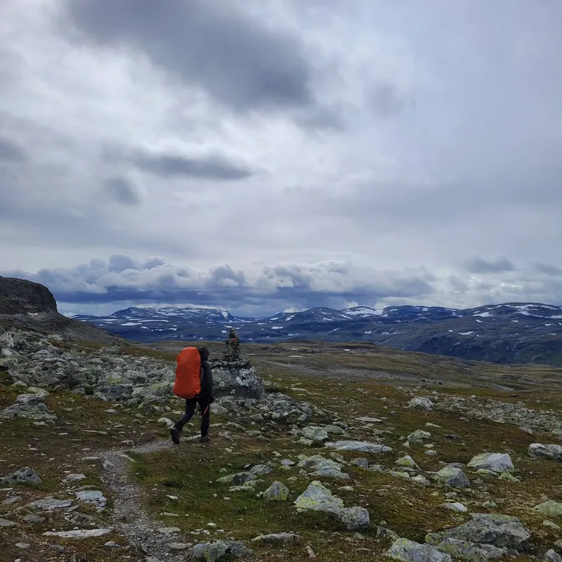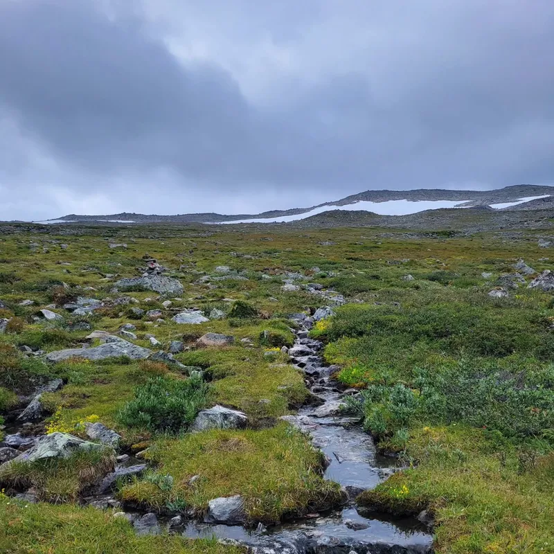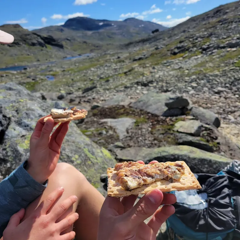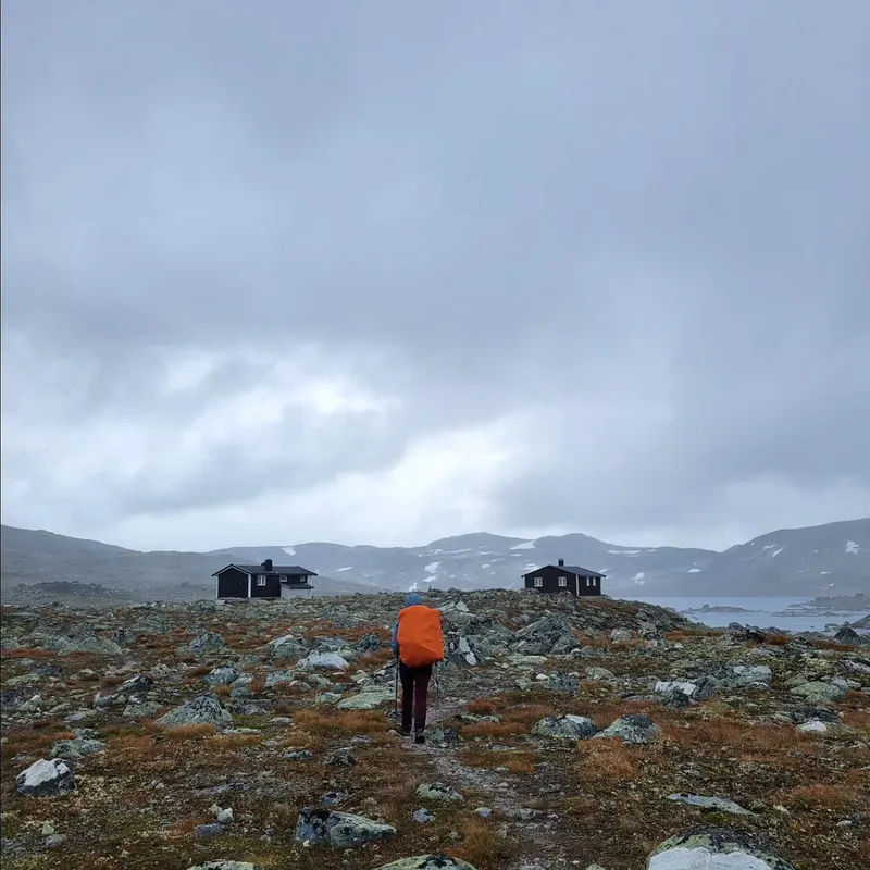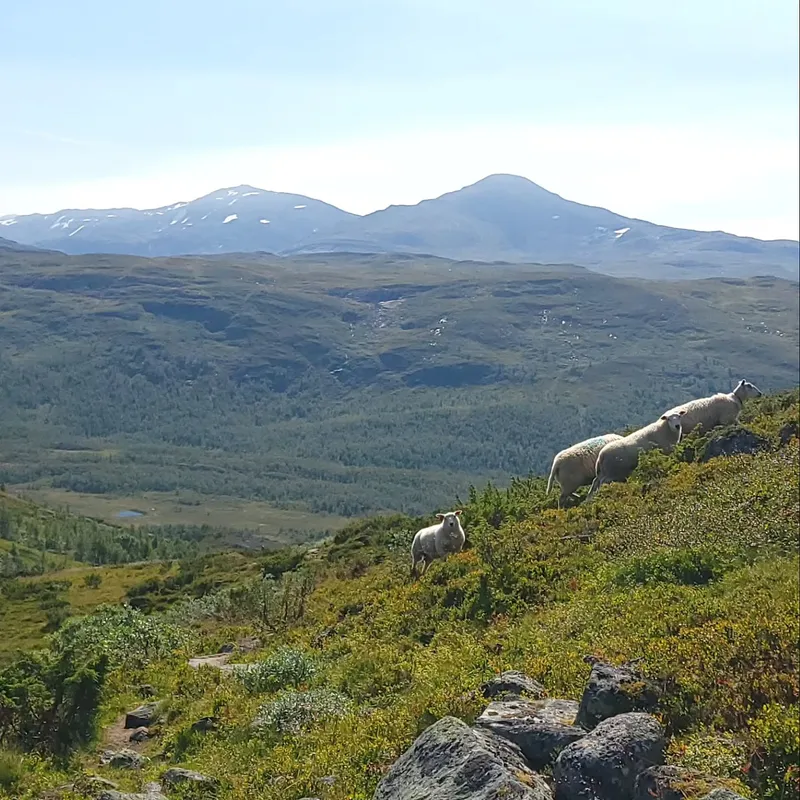 Today we left Jotunheim park to enter Skarvheimen. We said goodbye to our beautiful cabin after a delicious oatmeal preparation (only 160 NOK!) We say goodbye to our trekking neighbors, and goodbye to the flora and fauna of the park (we didn't get to see reindeers in the end...)