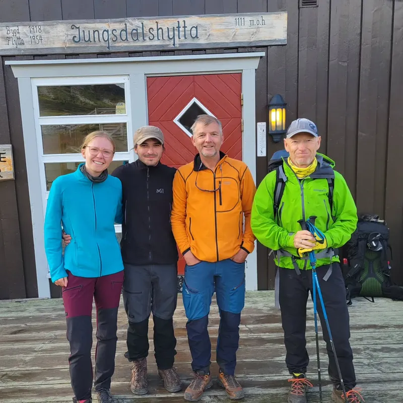 We saw our previous trekking neighbors again, but added to that a Spanish man and a retired kine turned DNT ranger, here to check the state of the hut. The man so far has spoken Norwegian, French, German, English, and Spanish fluently.