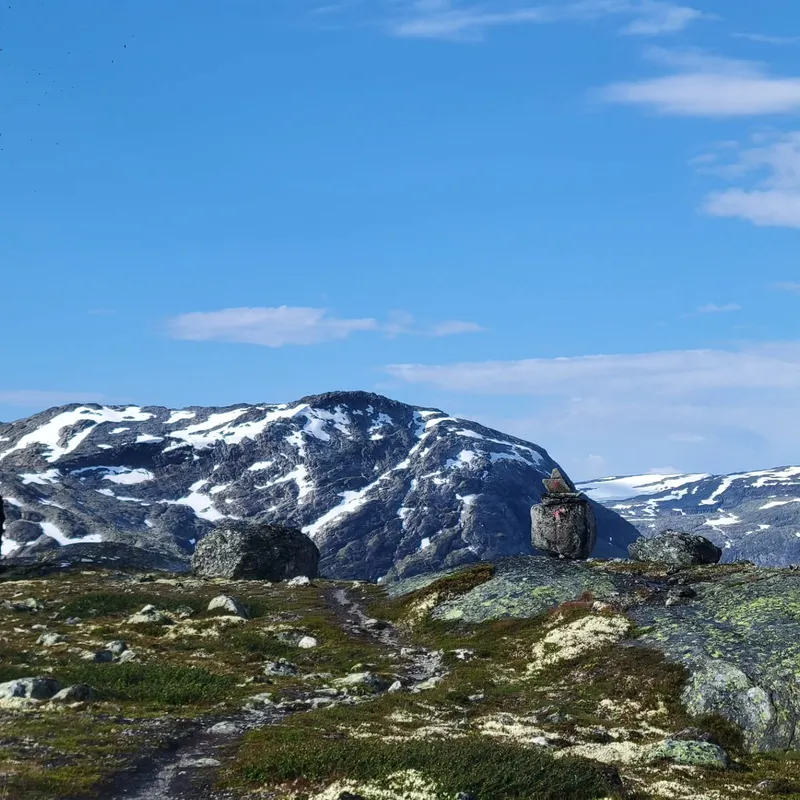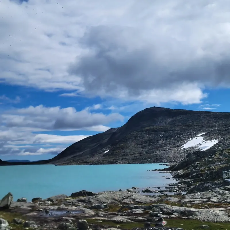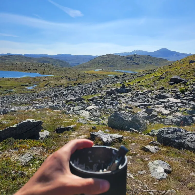 We picked the day off finishing yesterday's hike and going to Sognefjellshytta. This is where we found a small wooden cup-spoon which we instantly recognized. We haven't mentioned him yet, but so far we've had only one trekking neighbour. He's old, but way faster than us, speaks Norwegian, French and English and is quite shy. His footsteps have guided us through many confusing sections but for the first time, we caught up to him and handed it back. He took a picture of us, we think that means thx.