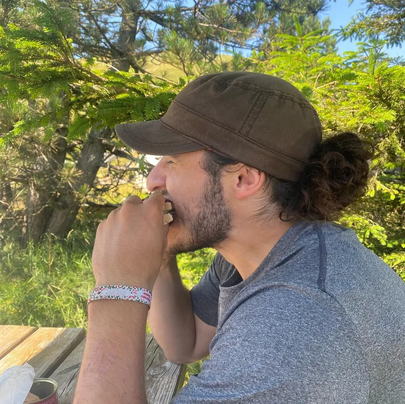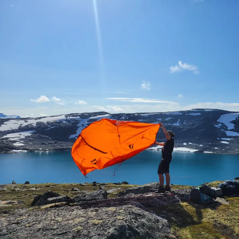 We hiked through rivers and lakes (obviously) but also glaciers and snow. We found a beautiful lunch spot where we dried our tent and tried a new recipe: rice cooked the day before mixed with an actual cube of chicken. Like, 500g of "chicken" hydrolic pressed into a cube or something. Probably some act of defiance to god, but it tasted great and fixed our apparent caloric deficit from the day before.