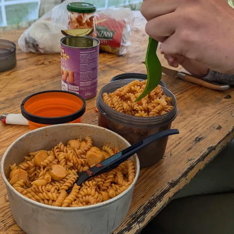 With our experience so far, we packed the best compromise between price, weight, packability, and calories. It cost 52€ for 2, weighs around 6kg, and should feed us plenty while offering variety.