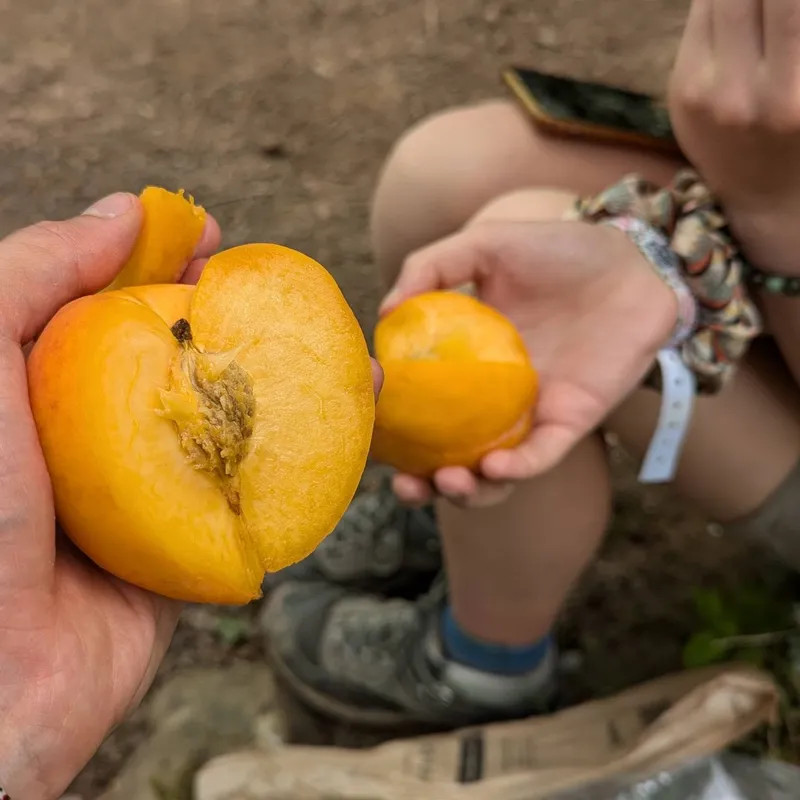 It's 2:30pm, we've already arrived and couldn't be more pleased. We see a lake, no tents in sight. I take a dive. We read. We then take out four sugary crêpes and garnish them with brownies (the first « brow-crêpes ».)