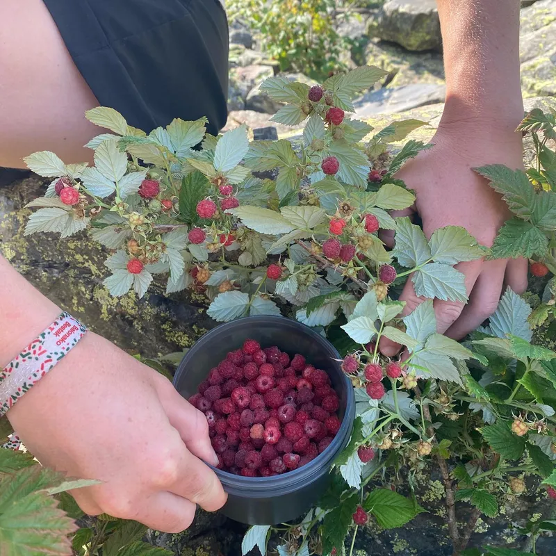 Best: We traversed a field of wild raspberries and HAD TO stop to gather a full tupperware. We hiked in a beautiful valley with fewer people and a more peaceful hike. We met a cheerful girl from Quebec who does the Hexa trek.