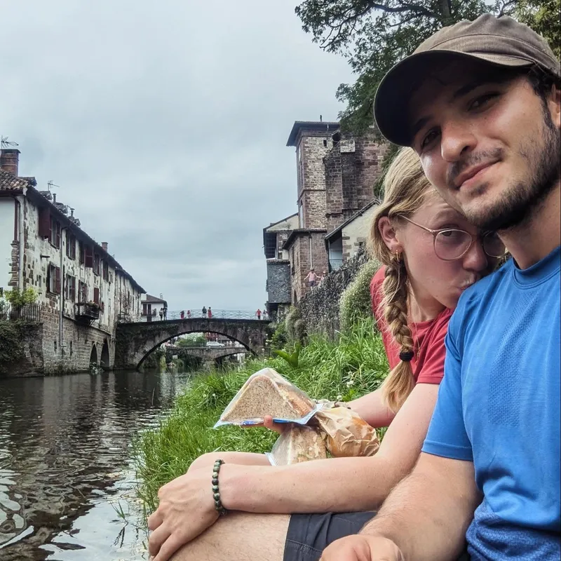 Very short day to pick up the trek with, we started of losing a phone (it's actually fine now) and a water bottle. Still I (Ixil) got to do a lot of animal photography, saw a crow riding a black horse which I can't wait to share once I can read the SD card back home. This time of the year a lot of the animals are newborns which is pretty unique to see but also makes walking around them slightly more dangerous. Overall we made it well on time, still hangover from yesterday's fête de bayonne and rdy to go to sleep at 9pm.